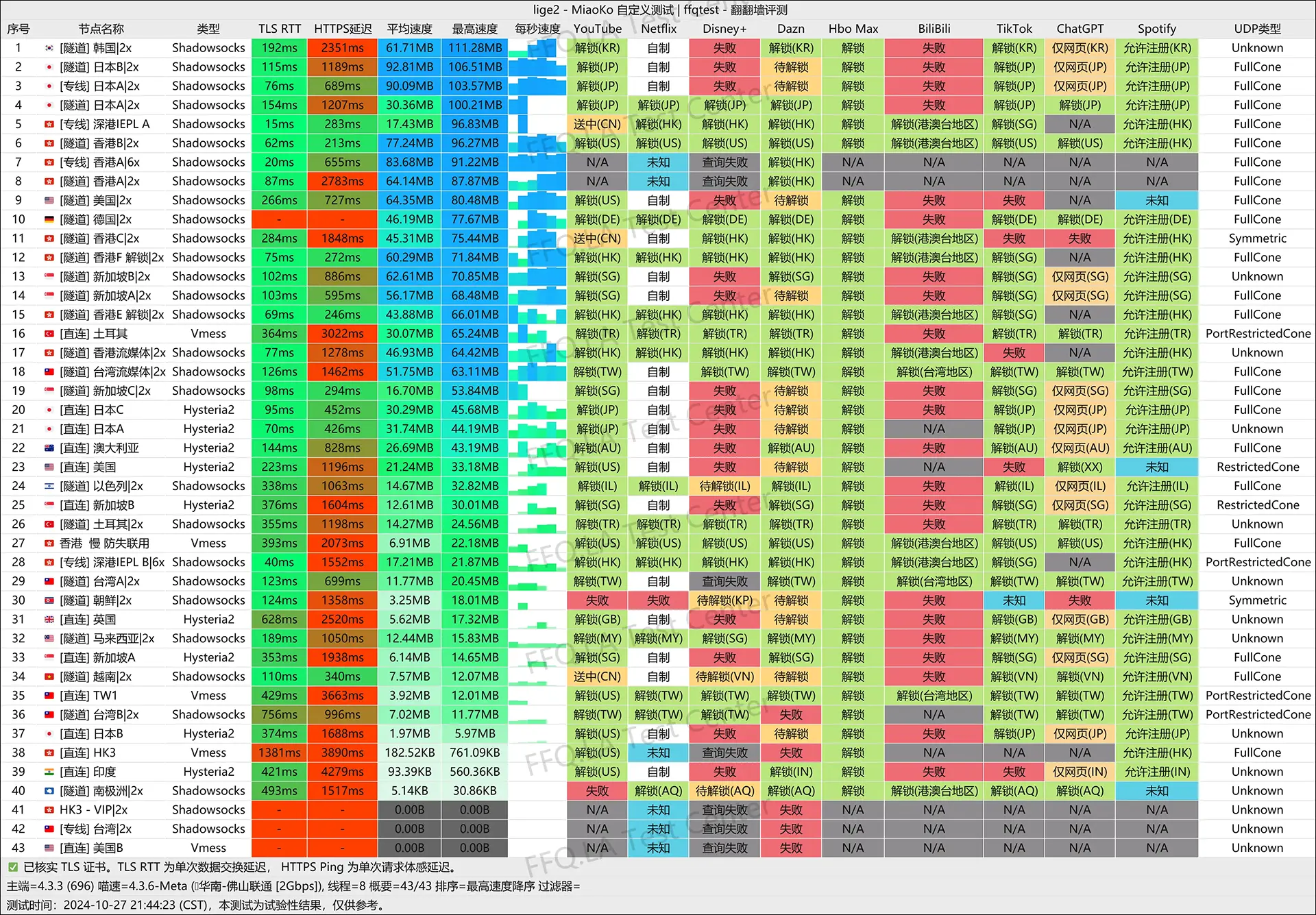 速度测试 & 流媒体解锁图