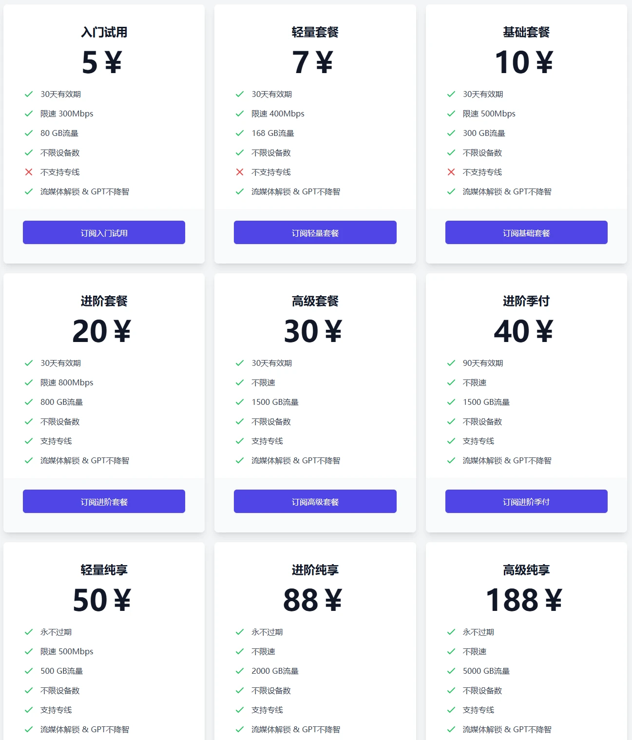 按量付费:✅ 有3种不限时的一次性流量套餐。